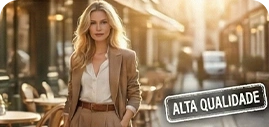 Cenários de luxo, iluminação perfeita, poses naturais e textura real da sua peça. Resultado digno de catálogo.